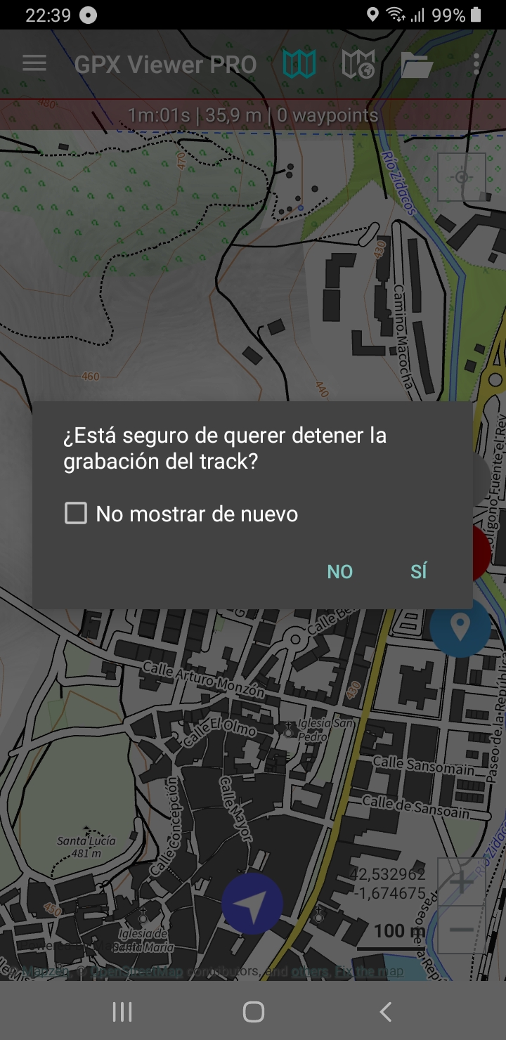 Yes, I used GPX Viewer Pro. I was able to stop (Picture1) and give the name to the track (Picture2), but before appearing the file explorer to save (Picture3), the app closed down. Since then I try to open again the app but it gets frozen and closes again and again.